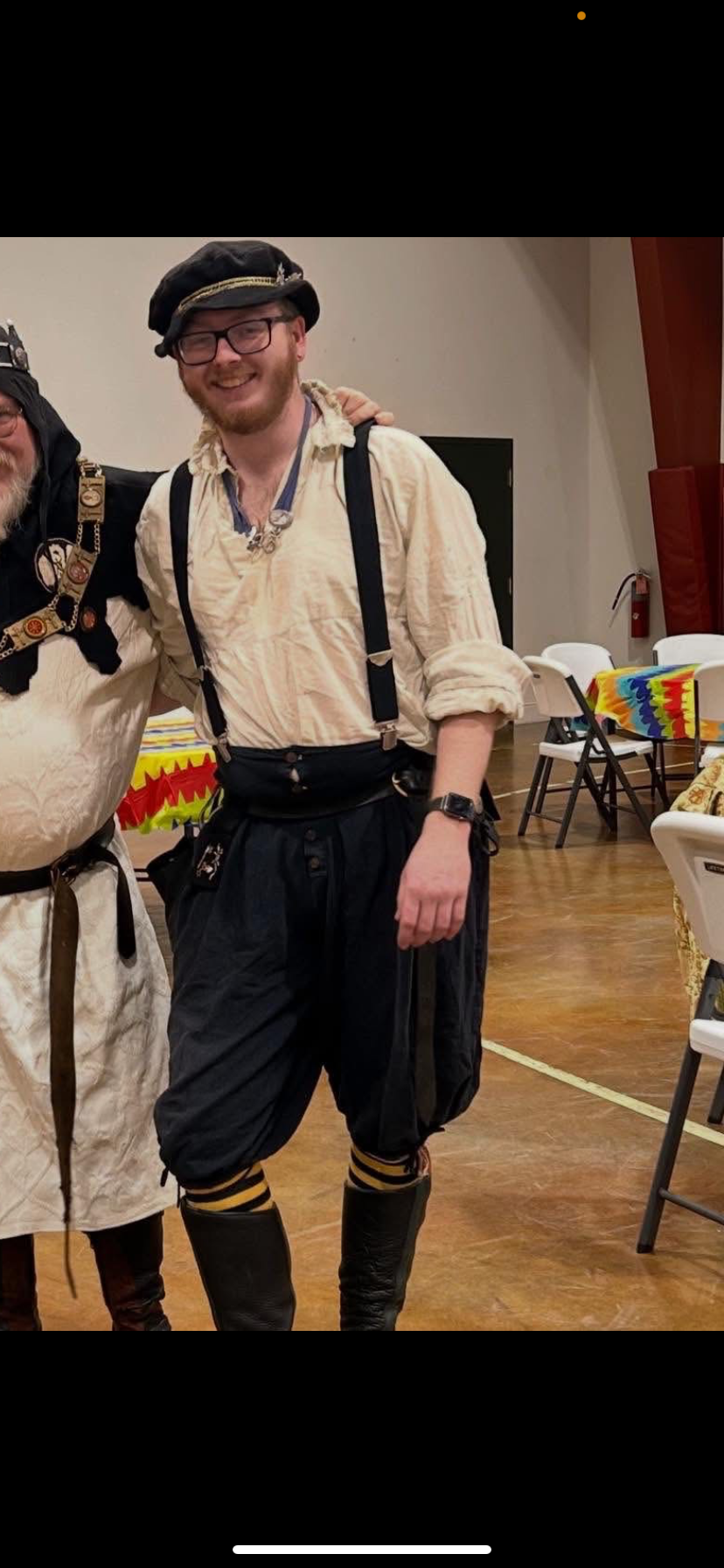 19:20, 4 December 2025 EmrysEustace.jpg (file) 30 KB Broom Photo of Emrys Eustace (Broom) by Mistress Tsveea, taken at the Costuming & Rapier event where Illadore was elevated to the Laurel. 1